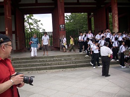 Wir sind wie andere Touristen nach Asakusa gefahren. Auf uns wartete nicht nur Sensouji, sondern auch Denhouin, der normalerweise nicht für Besucher zugängig ist. Da Herr Koide, der unsere Reise in Hadano und Tokyo gefilmt hat, eine Sondergenemigung der Besichtigung erhalten hat, könnten wir uns mehrere Schätze des Tempels anschauen.(他の観光者と同じように浅草に向かいました。秦野と東京で私たちの旅行をビデオに納めてくださった小出さんが特別に許可を取って下さり、普段一般公開されていない伝法院も見せていただく事になりました。伝法院にはとても大きな絵馬がたくさん奉納されてあり、また庭もとても素晴らしかったです。)