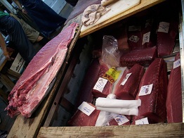 Wir haben uns sehr spät, also um 6:30 Uhr morgens, mit Herrn Kakegawa verabredet, der den ganzen Reiseplan in Tokyo aufgestellt hat, und sind zum Tsukiji-Fischmarkt gefahren. Eigentlich ist der Markt ab 3:00 Uhr morgens im Betrieb, aber die Touristen dürfen erst ab 9:00 Uhr eintreten. Nach dem Bewundern über Fisch haben wir gegen 9:30 Uhr ein Sushi-Frühstück gegessen. Wir haben drei verschiedene Thunfischsorten probieren können. Nach dem Essen haben wir uns mit Fisch-Zwischenhändlern verabredet und uns über den Fischmarkt und den Fischfang informiert.(朝遅い時間、6時半に東京の旅程を立ててくださった掛川さんと待ち合わせをして築地に向かいました。本来なら市場は3時ごろから始まります。しかし、観光者は本当は9時以降出ないと入場出来ないのです。いろんな魚を見た後に、朝食にお寿司を食べました。3種類のマグロを試しに食べ比べる事が出来て満足です。その後、仲買人の方々と待ち合わせをし、市場の事や漁業について話を伺いました。)